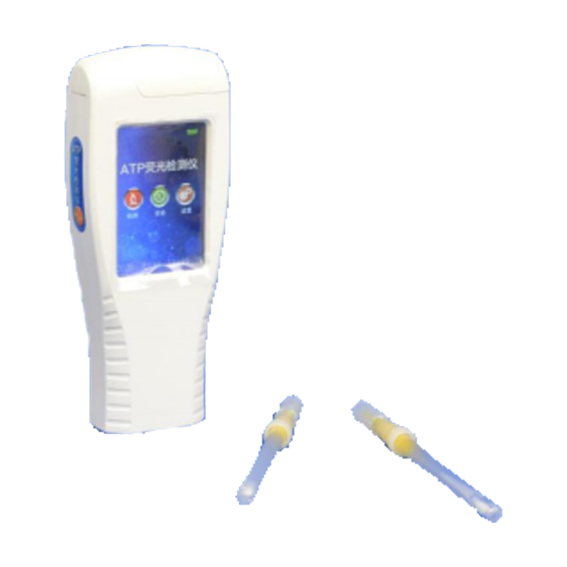 ATP熒光檢測儀采用生物化學(xué)反應(yīng)方法檢測ATP含量,ATP熒光檢測儀基于螢火蟲發(fā)光原理,利用"熒光素酶—熒光素體系”快速檢測三磷酸腺苷(ATP)。ATP拭子含有可以裂解細(xì)胞膜的試劑,能將細(xì)胞內(nèi)ATP釋放出來,與試劑中含有的特異性酶發(fā)生反應(yīng),產(chǎn)生光,再用熒光照度計檢測發(fā)光值,微生物的數(shù)量與發(fā)光值成正比,由于所有生物活細(xì)胞中含有恒量的ATP,所以ATP含量可以清晰地表明樣品中微生物與其他生物殘余的多少,用于判斷衛(wèi)生狀況。